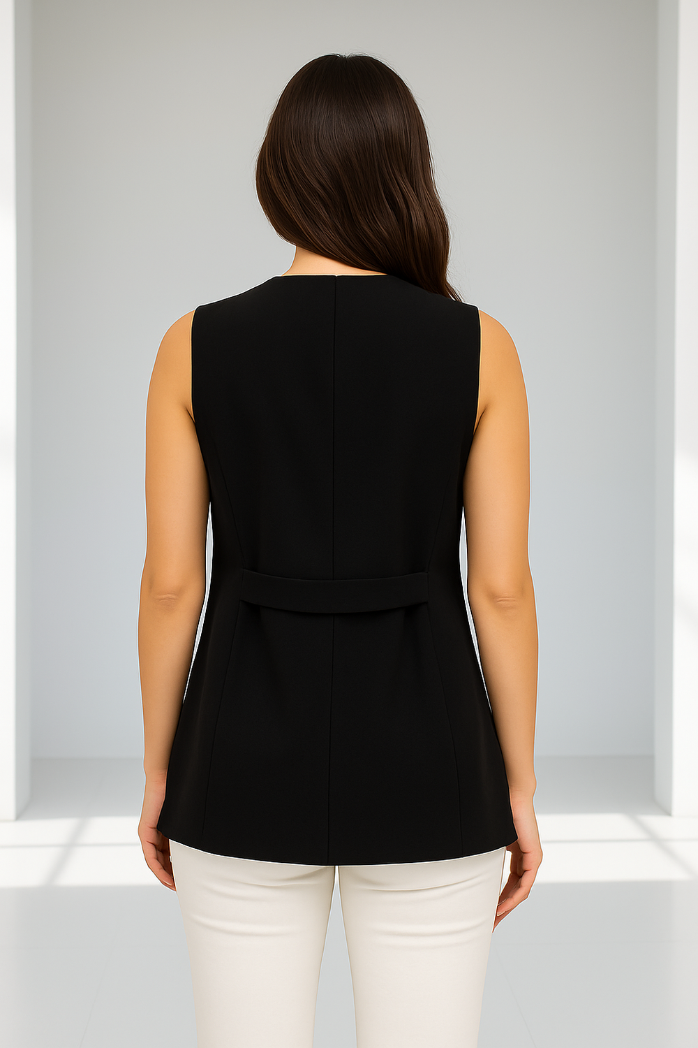 Refined, versatile, and unmistakably chic — this tailored vest is the ultimate layering essential for transitional weather and contemporary everyday style. Designed with a flattering silhouette and clean structure, it's a staple for modern wardrobes.